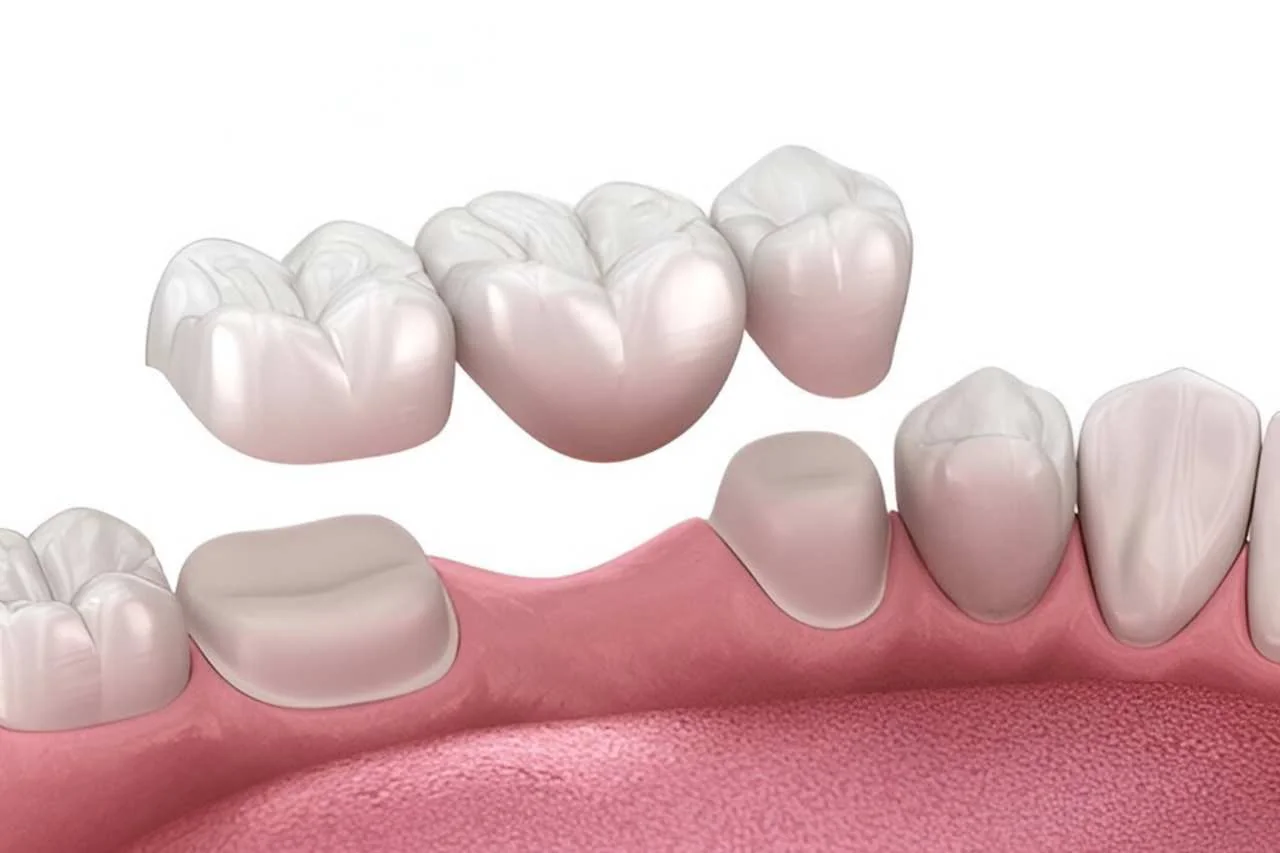 Dental bridges are artificial teeth that seamlessly replace missing ones, restoring your smile's natural appearance and function. Crafted from materials such as porcelain, ceramic, and metal, bridges are permanently anchored to surrounding teeth.